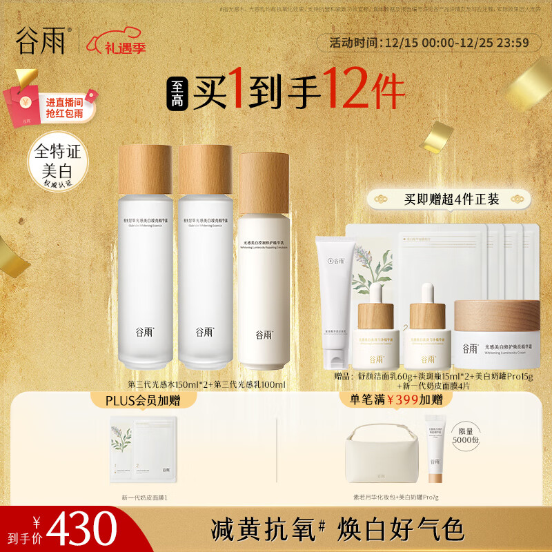 包邮 谷雨第三代光感美白水乳套装提亮淡斑修护补水保湿化妆品生日礼物女