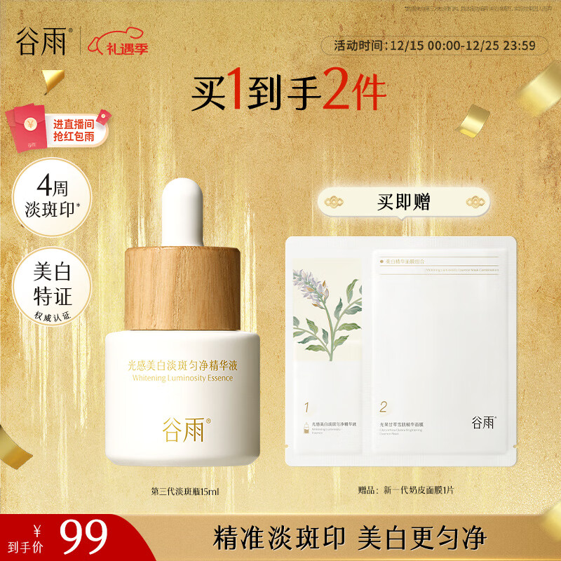 包邮 谷雨第三代淡斑瓶15ml美白精华淡化痘印熬夜补水提亮化妆品